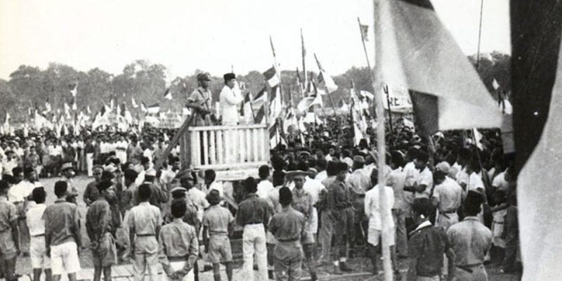 Soekarno pidatona ukur tilu menitan. Tapi, éta pidato anu singget téh gedé hartina pikeun anu daratang ka Lapang Ikada.*